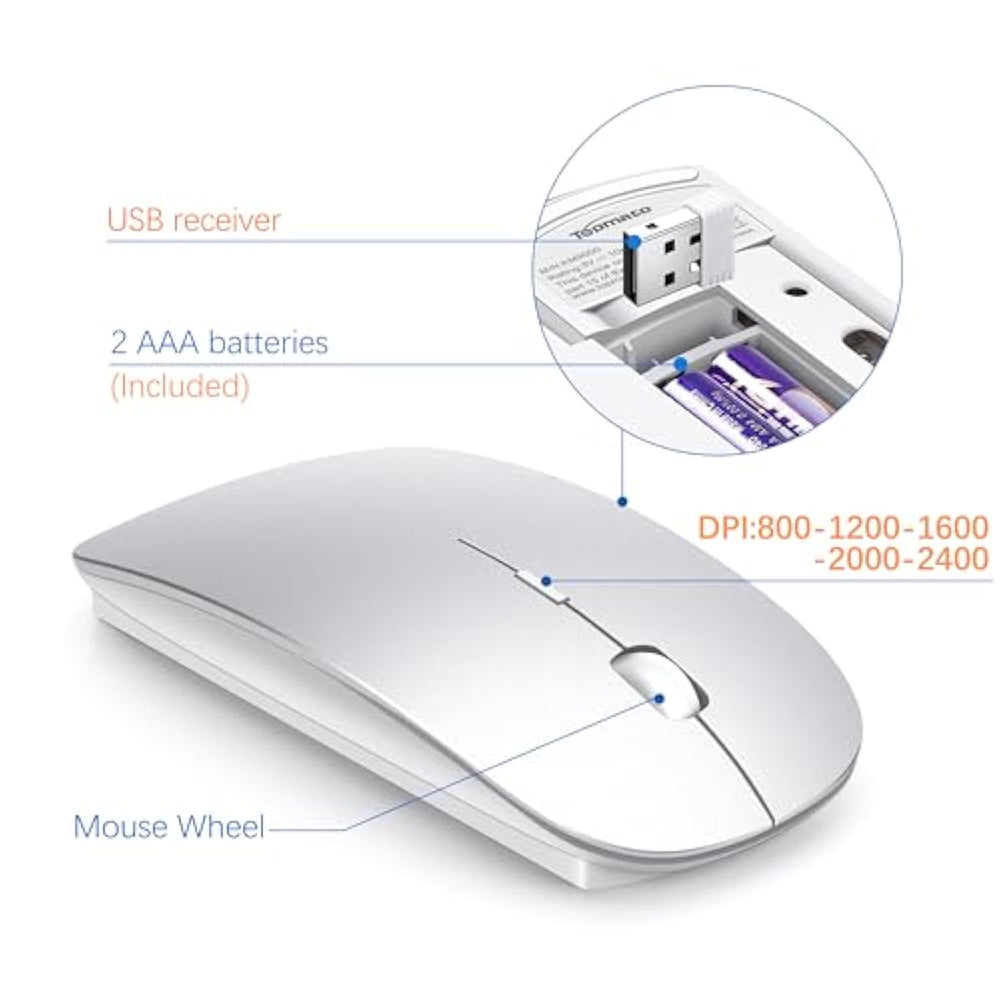 | ?Stable 2.4G Wireless Connection?Powerful And Reliable Connection Of Wireless Keyboard Mouse Is Up To 10 M(393.7In). Wireless Keyboard With Mouse Combo Share A Nano Receiver (Stored At The Bottom Of The Mouse) Without Installing Any Additional Software, Plug And Play. Keep Your Desk Clean And Tidy. | | ?Efficient Desktop Keyboard Wireless + Wide Compatibility?The Wireless Computer Keyboard Preserving The Keys Of The Numeric Keypad, The Full-Size Keyboard Has 12 Function Keys Allows You To Quickly Access The Music/Volume/Mail, Etc(The Hot-Keys Not Fully Compatible With Mac System). The Keyboard Mouse Combo Wireless Is Compatible With Windows Xp / Me/ Vista / 7 / 8 /10 / 11 Operating Systems. Work Well With Devices Which Has Usb Slot Like Pc, Laptop, Macbook, Desktop, Chrome-Book, Smart Tv. | | ?Silent Keyboard And 5 Dpi Mouse?The Wireless Office Keyboard’ S Scissor Switch Keys Provide Less Noise. Light And Responsive Tactile Keystroke Makes Typing Soft And Comfortable. Silent Cordless Mouse Has 5 Dpi Levels (800/1200/1600/2000/2400), Allowing You To Adjust The Dpi Speed To Your Preference. It Is Fast And Precise, Keep Quiet While Maintaining Sensitivity. Never Worry About Disturbing Others To Rest While Working Or Playing. | | ?Ultra-Slim And Portable Design?Wireless Pc Keyboard Has 14.55X5.5X0.8In(37*14*2Cm), 0.8In(2Cm) Ultra-Thin Abs Plastic Body, Which Can Save Space And Easy To Carry. Kit Keyboard And Mouse Wireless’S Sleek Design Is Super Match With Office Desk. Perfect For Business Travel, Office, Home, Library And Many Public Occasions. | | ?Battery Included + Keyboard Cover? Long-Lasting Basic Aa And Aaa Batteries Are Included In The Wireless Keyboard And Mice Combo, Battery Life Between 3 And 5 Months(Varies By Usage Conditions). The Included Cover Can Protect Your Wireless Office Keyboard From Dust And Liquid. 2-Year : If Quality Problem With Wireless Keyboard Mouse Set Occur Within One Year, We Will Replace The New One To You For Free. | | ?Conexión Inalámbrica Estable De 2.4G?La Conexión Potente Y Confiable Del Mouse Con Teclado Inalámbrico Es De Hasta 10 M (393.7In). El Combo De Teclado Inalámbrico Con Mouse Comparte Un Receptor Nano (Almacenado En La Parte Inferior Del Mouse) Sin Instalar Ningún Software Adicional, Plug And Play. Mantenga Su Escritorio Limpio Y Ordenado. | | ?Teclado De Escritorio Eficiente Inalámbrico + Amplia Compatibilidad?El Teclado Ordenador Inalámbrico Que Conserva Las Teclas Del Teclado Numérico Y El Teclado De Tamaño Completo. El Teclado Ergonomico Español Y Las 12 Teclas De Función Le Permiten Acceder Rápidamente A La Música / Controlar El Volumen / Correo, Etc. El Combo Inalámbrico De Teclado Y Ratón Es Compatible Con Los Sistemas Operativos Windows Xp / Me / Vista / 7/8/10 / Os. | |
