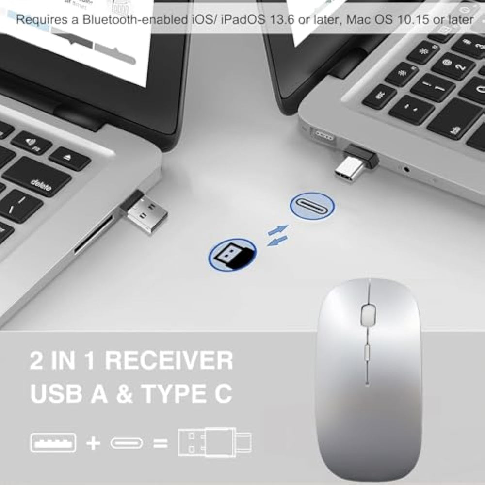 | 2025 New Upgrade 4-Mode Wireless Mouse - The Usb C Wireless Mouse Easily Switches Between 4 Connections (Bt5.2 Bt3.0 + Usb-A/C). Switch From Office Laptop To Macbook In 2S. Usb-A Usb C Dual-Head Receiver Compatible With All Electronic Devices' Port - Usb-C And Usb-A. (Requires A Bluetooth-Enabled Macos 10.15 Or Later, Ios/Ipados 13.6 Or Later) | | Upgrade Newly Mouse With Jiggler Mode- Press The Dpi Button For 3S To Turn On/Off Random Jiggler Mode To Keep Your Mac Active During Online Reading/Online Courses/Games Tasks/Zoom Meeting/Os Updates/Cloud Backups/Video
