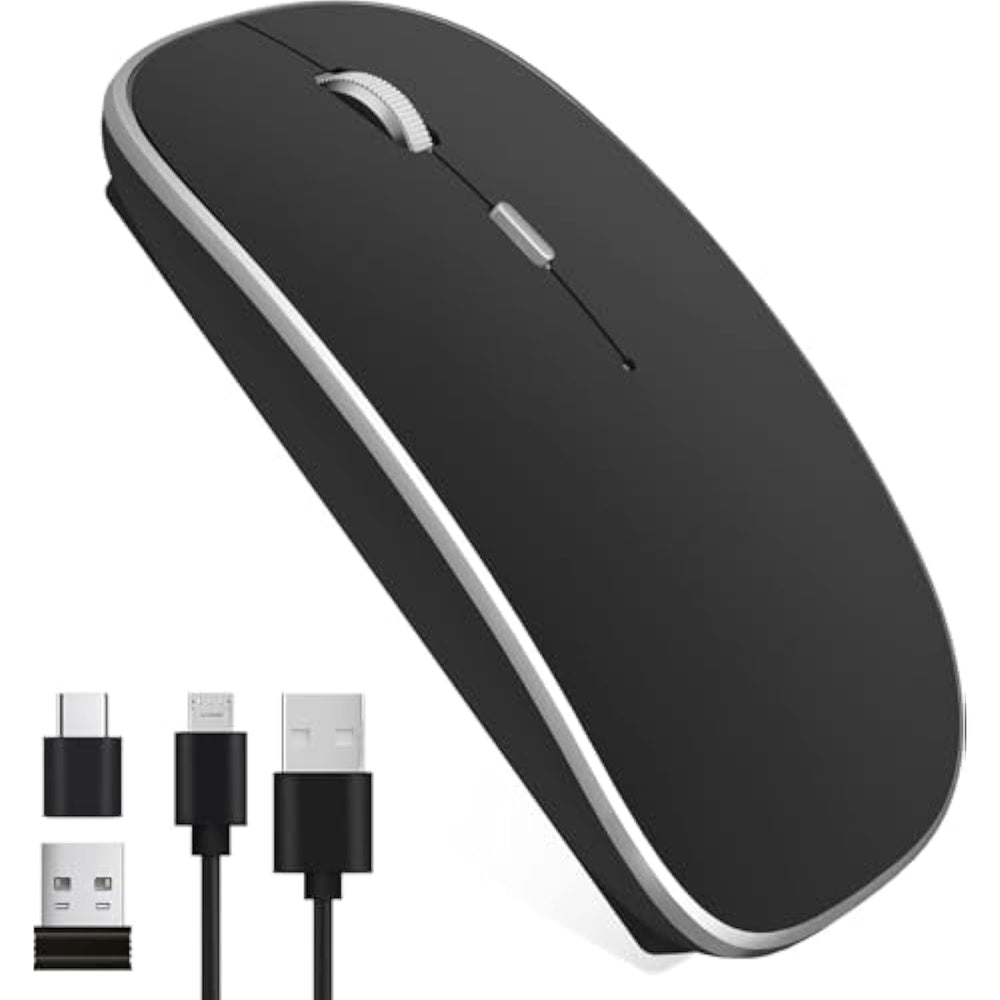 | ?Rechargeable Wireless Mouse?The Wireless Mouse Has A Built-In High-Quality Rechargeable Battery, Which Can Be Recharged Via A Usb Cable. It Takes Approximately 1.5-2 Hours To Fully Recharge. The Energy-Saving Rechargeable Wireless Mouse Goes Into Standby Mode After 3 Minutes Of Inactivity; It Can Be Activated By Clicking Any Button. Note: The Mouse Cannot Be Charged Using The Quick-Charge Head; We Recommend Using Computer To Charge It. | | ?With Dual Usb And Type-C Receiver?The Wireless Mouse Features Dual Usb And Type-C Receivers, Compatible With Most Computers. The Usb Receiver Is Compatible With Most Computers Equipped With Usb Interfaces. The Type-C Adapter Is Designed For Devices With Type-C Ports. Plug And Play; Simply Plug The Receiver Into Your Laptop And The Mouse Will Work. | | ?Quiet Click?The Silent Wireless Mouse Provides A Quiet And Comfortable Working And Learning Environment. The Left And Right Buttons Are Specially Designed To Remain Silent When Clicked. Don'T Worry. It Is Very Suitable For Use In Libraries, Offices, Living Rooms, Cafes, And Other Public Places. | | ?2.4G Wireless Data Transfer? Adopting 2.4G Wireless Technology, The Wireless Mouse Offers A Powerful And Reliable Connection Up To 10M. The Mouse Features 1000/1200/1600 Dpi, 3 Adjustable Levels, Allowing You To Easily Change The Mouse Sensitivity. Advanced Optical Tracking Technology Provides Smooth And Responsive Tracking. | | ?Wide Compatibility? The Ultra-Thin And Lightweight Wireless Mouse Design Fits Easily Into Your Laptop Bag Without Taking Up Space And Is Easy To Carry When You Go Out To Work, Study, Or Travel. The Lightweight And Slim Mouse Provides Maximum Support For Your Hands And Provides Long-Lasting Comfort. The Mouse Is Widely Compatible With Windows 2000/Xp/Vista/Linux/Win7/Win8/10/Mac Os X. | |