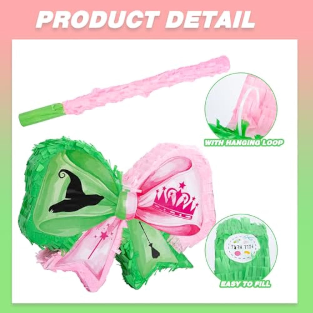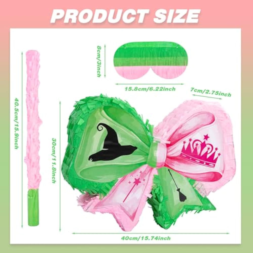 | ?Package Includes?You Will Get A Pink And Green Bow Pinata Decorated With Many Accessories Of The Same Theme, Including A Stick, A Eye Mask; This Witch Piñata Set Is In The Shape Of Bow, Bright Colors, Easy To Get Kids To Love,Such A Complete Piñata Game Set Can Meet All Your Witch Birthday Party Game Requirements. | | ?How To Play?Our Witch Pinata Has A Pre-Made Hole At The Top, So You Can Easily Fill With Candy, Confetti, Or Kids Party Favors By Simply Cutting The Small Opening; Then Put On A Blindfold And Smash The Slotted Pinata With A Bat Until The Contents Are Released, And The Winner Will Receive A Prize. | | ?Proper Size?The Witch Piñata Is Approx. 15.7 X 11.8 Inches, Proper Size For You To Fill With Small Items And Treats.You Can Hang It From The Ceiling, Wall, Door, Stairwell, Tree, Window, Yard, Or Wherever You Like To Be The Highlight Of Your Truck Birthday Decorations. | | ?Witch Party Favors?Made Of Brightly Colored Paper And Cardstock. Great Pinata For Any Age Or Witch Theme Party, Enhance The Festival Atmosphere And Make The Festival More Interesting, Also Can Be Applied As Party Decorations Or Photo Prop Before Breaking Them Open.Whether Your Event Is Princess-Themed Or Witch-Themed, This Set Ensures Double The Fun. | | ?Popular And Versatile?This Pinata Set Of Products Is Very Suitable For Various Parties, Such As Birthday Parties, Witch Parties, Movie Theme Makeup Parties, Princess Tea Parties, Makeup Parties, Afternoon Tea Parties, Etc. They Are Popular At Any Party, And Their Presence Adds Color To The Party Atmosphere | |