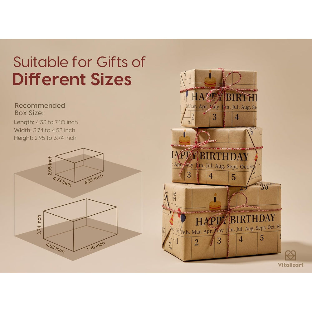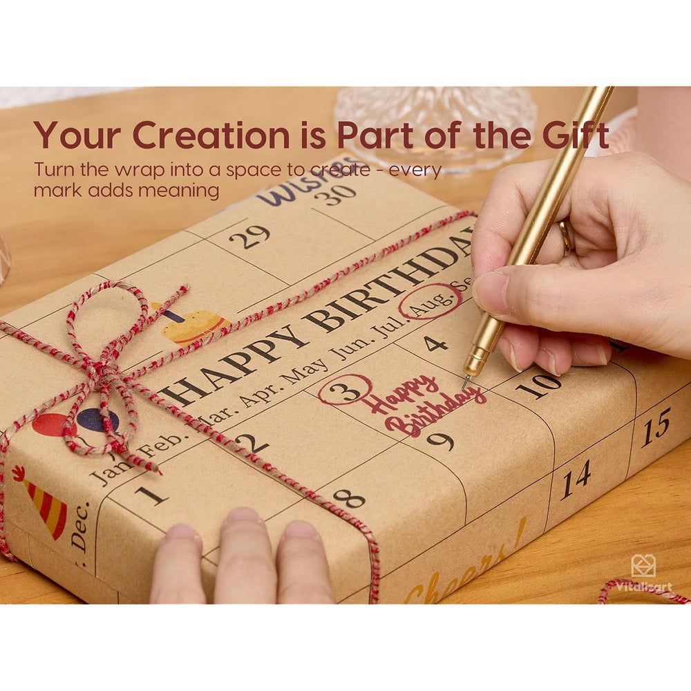 | ?Perfectly Paired Ready To Wow? Each Package Includes 1 Paper Roll (17"X197") And A 5-Yard Twine—Pre-Matched For Your Convenience! Create Stunning, Coordinated Gifts In Minutes With Zero Effort. ?Turn The Wrap Into A Birthday Keepsake? Circle Their Special Write Wishes Directly On The Paper—Transforming Simple Gift Wrap Into A Personalized Calendar They’Ll Cherish Forever. ?Create A Gift As Unique As They Are? Doodle, Color Or Add Heartfelt Notes—Every Stroke Adds Love. Your Touch Makes It Not Just Pretty, But Part Of Your Gift’S Story. ?Premium Quality For Versatile Uses? Made From Thick, Tear-Resistant Recycled Paper That Folds Smoothly Without Cracking - No Cheap Flimsiness Or Chemical Smells! ?Small Roll Less Waste? Compared To Larger Sizes, The 17" Width Is Pre-Calculated Specially To Cause Less Waste And Avoid Excessive Packaging. Plus, It Cuts Cleanly And Tapes Easily So You Can Customize For Any Size.