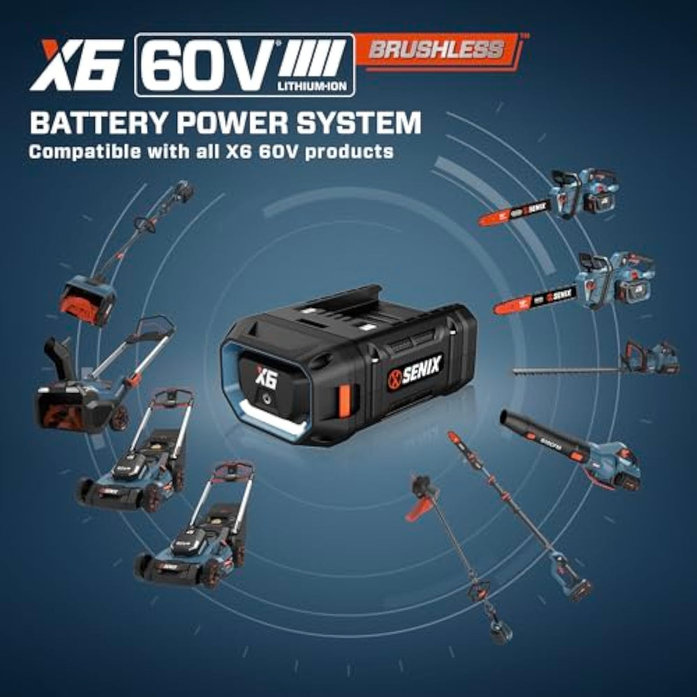 Premium Battery Performance: The X6 60 Volt Max* 4.0 Ah Lithium-Ion Battery With 224Wh Rated Capacity Provides Premium Power And Offers Excellent Run Time For X6 Cordless Power Tools | | Battery Features: The Battery Features An Easy-To-Read Charge Level Indicator; The Intelligent Power Management System Optimizes Individual Battery Cells For Maximum Power, Performance, And Runtime | | Wide Compatibility: The X6 60 Volt Max* 4 Ah Lithium-Ion Battery Is Compatible With All X6 60V Outdoor Power Equipment | | Durability: The X6 Battery Has A Shock-Resistant Design Helps To Protect It From Accidental Drops | | Maximum Productivity: The 60 Volt Max* 4.0 Ah Lithium-Ion Battery Delivers Continuous Power Without Memory Loss Or Power Loss, Allowing You To Work Longer And More Efficiently | |