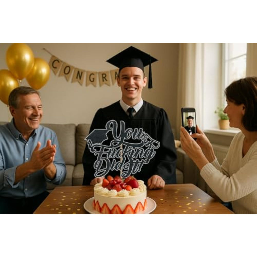 | Bold Hilarious Design That Steals The Show – This You Did It Cake Topper Features An Eye-Catching Script With A Graduation Cap Graphic And Cheeky Wording That Instantly Lights Up The Celebration. As One Of The Most Striking Graduation Toppers, This Bold Grad Cake Topper Adds Laughter, Personality, And Unforgettable Style To Any Graduation—Whether It’S Kindergarten, High School, College, Or Beyond. | | Premium Glitter Cardstock – No Mess, All Glam – Made From High-Quality No-Shed Glitter Cardstock, This 2025 Cake Topper Graduation Shines Under Lights Without Shedding Glitter On Frosting Or Tablecloths. Its Thick, Durable Build Keeps The Congrats Cake Topper Standing Tall In Cakes, Floral Centerpieces, Or Memory Boxes—No Drooping, Bending, Or Mess, Just Clean Sparkle That Lasts. | | Sturdy, Lightweight Reusable For Multiple Celebrations – Built To Last, This Graduation Topper Features Sturdy Construction That Keeps It Upright From Start To Finish. The Graduation Cap Cake Topper Is Lightweight, Reusable, And Often Shared With Friends For Future Parties. The Congratulations Cake Topper Doubles As A Graduation Hat Cake Topper Keepsake You’Ll Want To Save And Use Again. | | Perfect Size Ready-To-Use Convenience – The Graduate Cake Topper Fits Cakes From 6 To 10 Inches And Comes Pre-Assembled With A Sturdy Stick, So You Can Place The Graduation Cake Topper 2025 Straight Into Your Dessert—No Diy Needed. This Time-Saving Graduation Cake Decoration Makes Setup Fast And Stress-Free For Busy Hosts, Parents, Or Last-Minute Party Planners. | | Versatile Photo-Ready For Any Setup – More Than Just A Cake Accessory, This Happy Graduation Cake Topper Also Works As A Centerpiece, Photo Prop, Or Standout College Graduation Decor. With Crisp Lines And A Sparkling Finish, The 2025 Graduation Cake Topper Shines In Every Photo, While The Graduation Decorations Help Create Unforgettable Moments Your Grad Will Cherish. | |