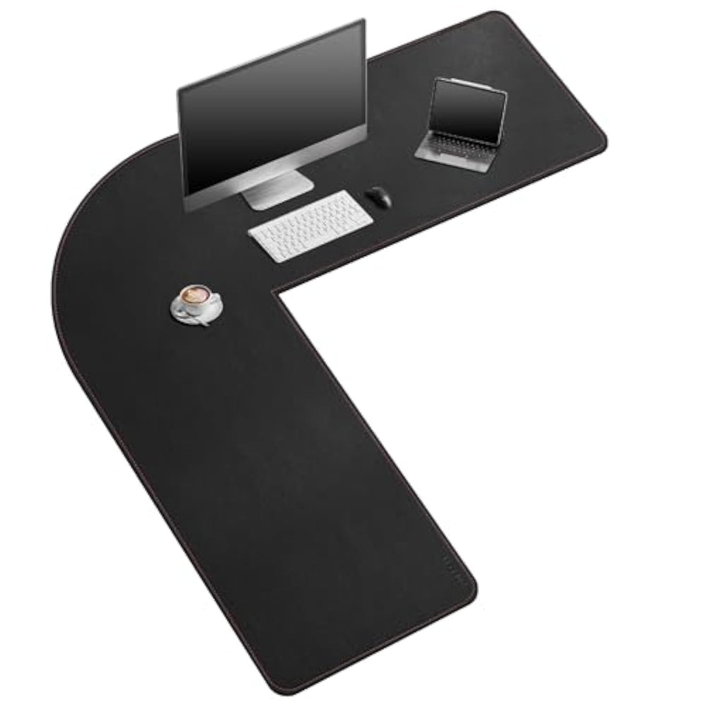 | Multifunctional Design - Comfortable and sleek, this corner computer desk pad easily fits on top of L-shaped desks and workspaces. This corner desk pad is large enough to keep your laptop, mouse, keyboard, PC, computer and other PC accessories. | | High Quality PU Leather - Waterproof and Heat Resistant, easy to cleaning and maintenance.The waterproof surface also protects your desk from water, drinks and spills. | | Smoothly - Mouse Pad with smooth surface materials less resistance with a more accurate mouse movement ,while maintaining excellent speed and control during your work or game. | | Anti-slip Base - With an anti-slip underside, our corner desk mat stays securely in place on all types of desks from glass to wood. | | Size: [62"(L) + 63"(W)] * 20"(H) / (157 + 160) x 50cm] offer you a large space to work. Protects Your Table From Water Spills, Coffee Burns, And scratches.Ideal for home, Office, Travel. | |